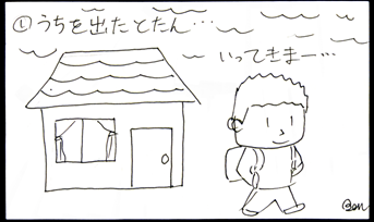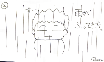 ➀外へ(出ます→ )とたん、急(きゅう)に雨(あめ)が降(ふ)り出(だ)した。